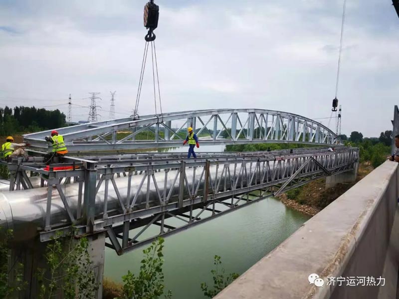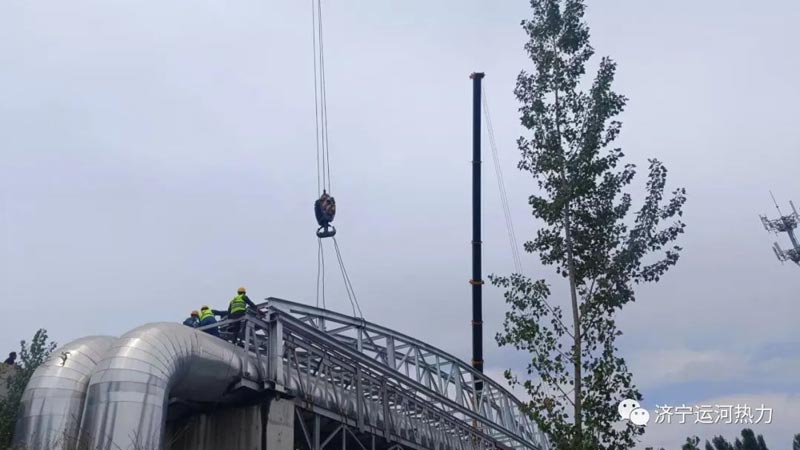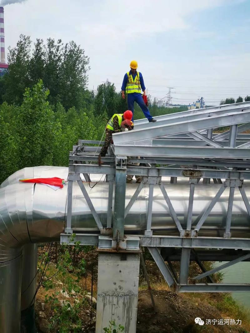 随着管网等级的提高和河道的加宽,原有管道架已不适应更安全、更可靠的供热要求,对此,我公司投资100多万元,购买近50吨H型钢材,前期工作准备了近两个月,今天顺利完成了其升级改造任务,为我公司服务区内的广大热用户将来安全的供暖打下了坚实的基础。